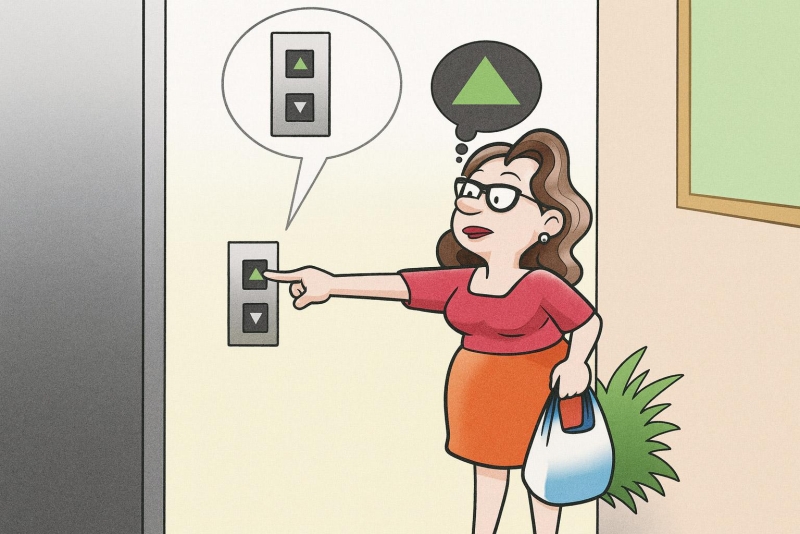 Para subir, acione apenas o botão superior, para descer, acione apenas o botão inferior. Acionar os dois botões indiferentemente ocasionará viagens e paradas desnecessárias, com prejuízo para todos.